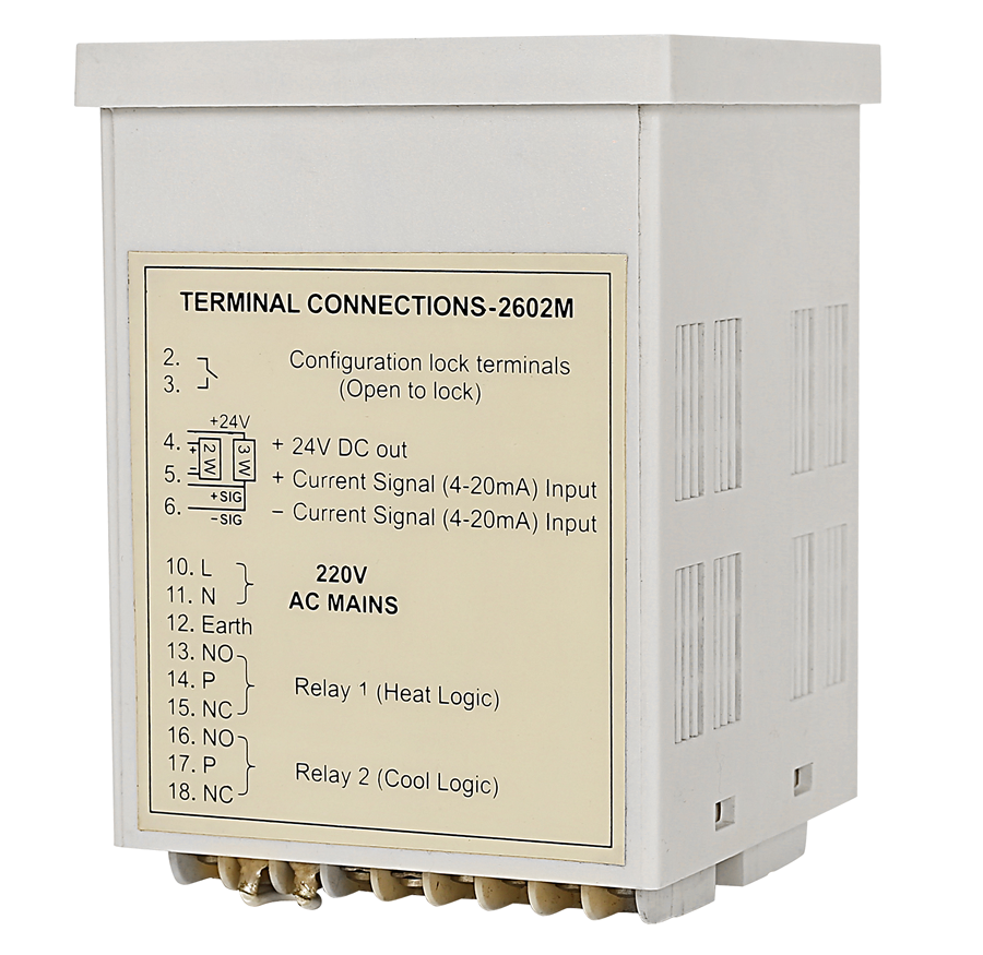 2 Set of Control Limits Set-1 heater logic & Set-2 cooler logic 5 Amps/220V AC Relay Contact output Hysterisis settable